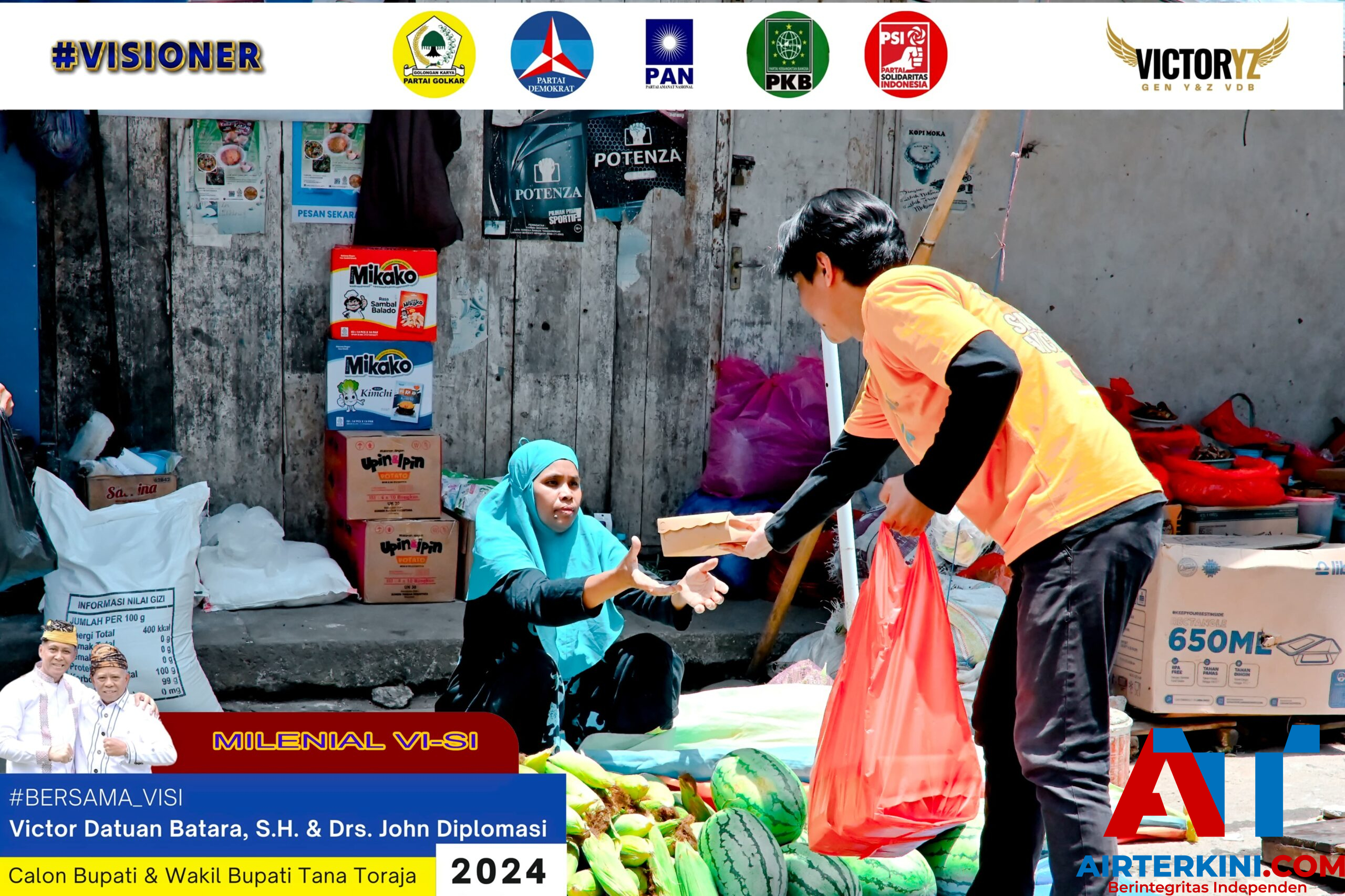 Tana Toraja– Di hari ulang tahunnya ke-64, Victor Datuan Batara (VDB) membagikan makanan nasi kotak ke para pedagang kecil di Pasar Makale dan kepada panti psuhan di Sangalla’, Minggu, 6 Oktober 2024. VDB lahir pada 6 Oktober 1960.